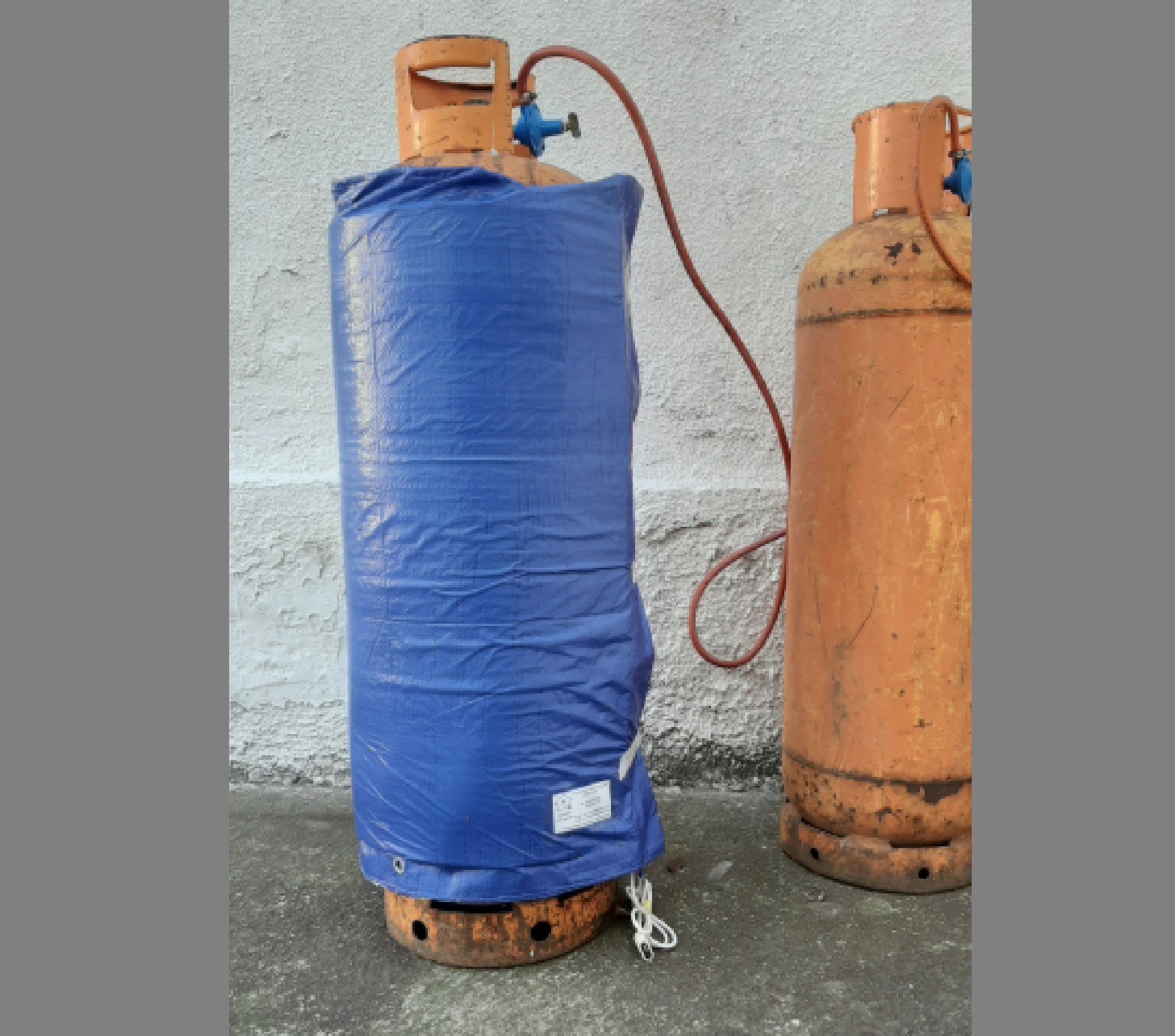 Grejanje plinskih boca, koje se koriste za grejanje peći i grejnih topova. I kada nije hladno vani, kada je toplo godišnje doba, korisnici imaju problem sa korišćenjem istih jer se usled velikog protoka plina, potrošnje, same boce se hlade i zbog toga se smanjuje sam pritisak u njoj i ne izlazi dovoljna količina plina i slab je učinak grejanja. Ova dimenzija grejača je 100 cm visine i potrošnje. Pravljeno je da se može skidati i ponovo postavljati na novu bocu, jer su one zamenljive, to jest kada se potroši ili isprazni plin. Mogućnost izrade i prodaje samog grejača bez ove završne obloge, stim da vi sami je nečim zaštitite, postavite neku izolaciju. Naravno da sam grejač treba biti uključen nekoliko sati ranije, pre same upotrebe, korišćenja plina.
